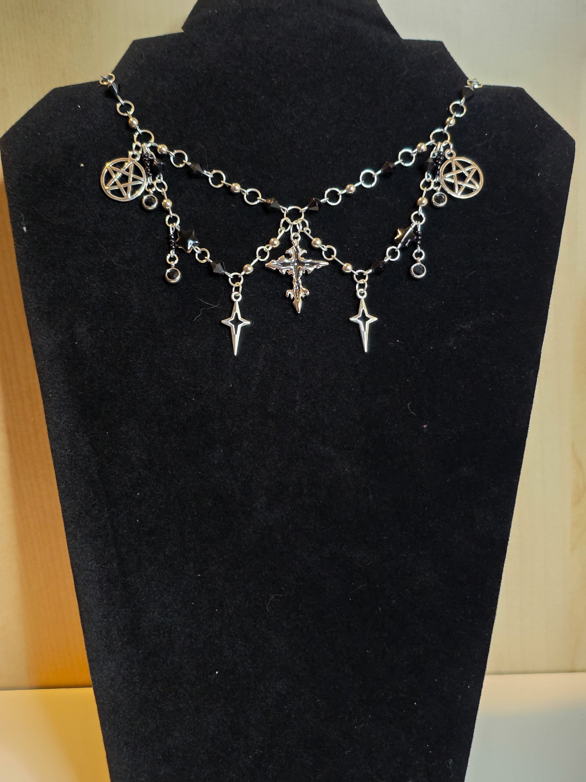 Silver and black necklace